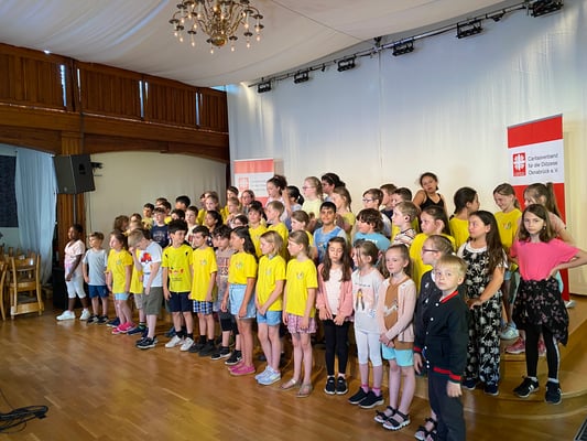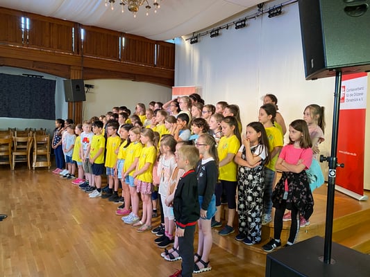 Im Juni 2023 durften wir an einem besonderen Projekt teilhaben! Die Caritas hat zusammen mit der Osnabrücker Musikerin Jennifer Schotter und den Minimusikern aus Münster ein Musikprojekt gestartet. Jennifer Schotter und Jakob Lübke haben einen Friedenssong geschrieben. Den haben wir fleißig in den Klassen geübt und durften den dann Ende Juni einsingen!
