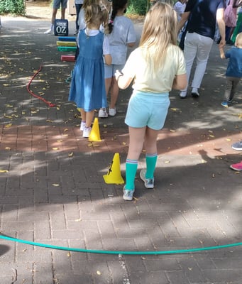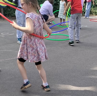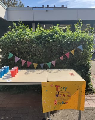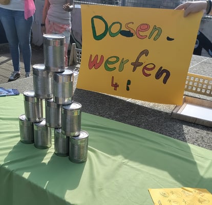 Am Freitagnachmittag waren unsere Schultore für große und kleine Besucher weit geöffnet. An verschiedenen Stationen, die jeweils von einer unserer Klassen vorbereitet worden waren, konnte das eigenen Können unter Beweis gestellt werden: Eierlauf-Parcours, Hufeisen werfen, Sackhüpfen, Hütchen-Ring-Wurfstand, Twister Street, Schwammtransport, "Triff den Becher", Dosenwerfen, "Bist du geschickt?", Theater Aktion. In unserer Mensa gab es kühle Getränke und ein riesiges Kuchenbuffet. Alle dies Köstlichkeiten stammten aus Elternhand. Auch Infostände über unsere Schule und unseren Förderverein gab es zu erkunden.